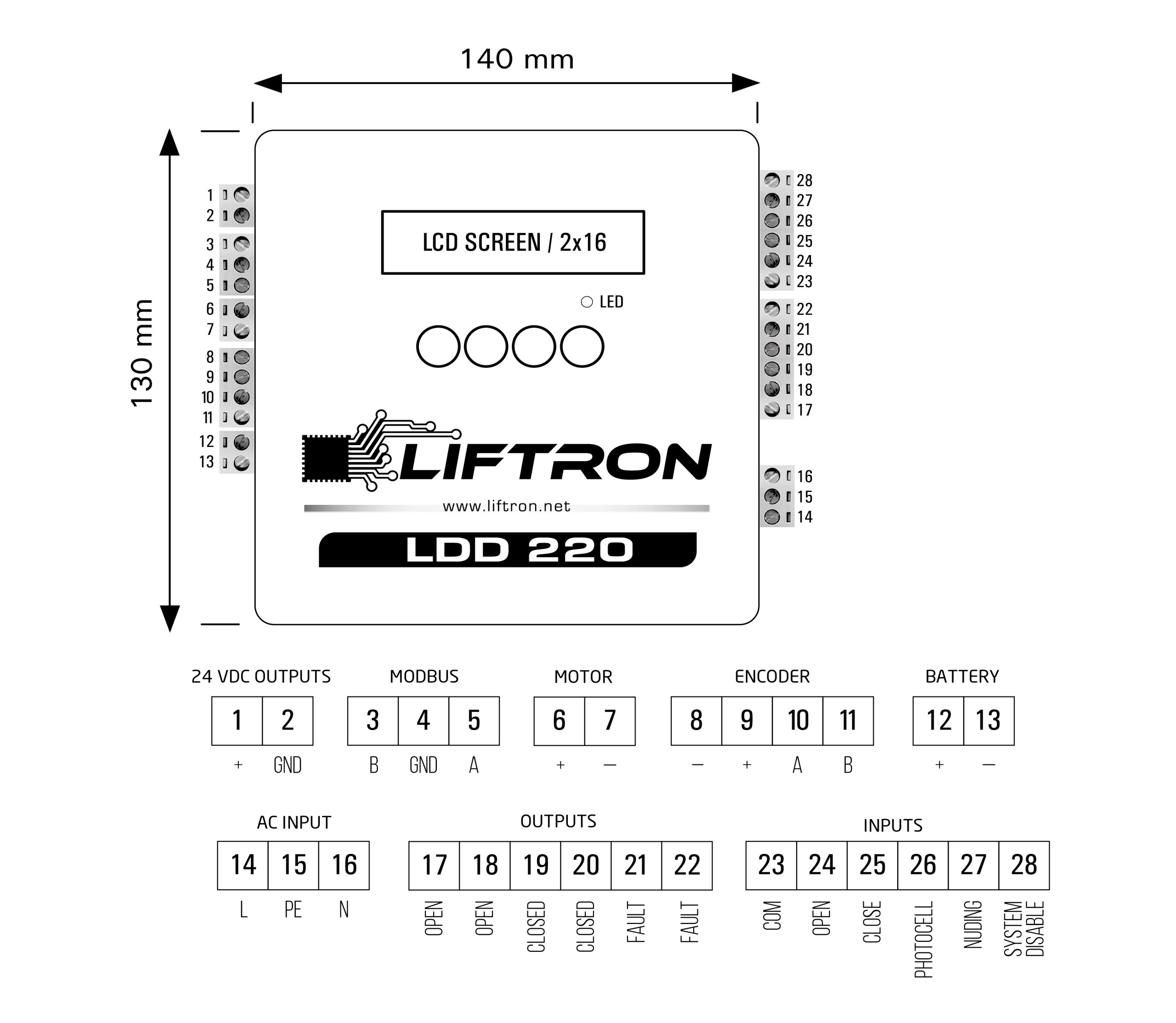 Kumanda Panosu İçin Çıkışlar Kapı tam açıldı / Kapı tam kapandı / Hata algılandı